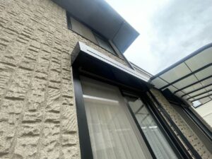 玄関上の3か所に剥離が見られましたが、施主様ご自身で補修済みであり、弊社では塗料の在庫状況をチェックしました。