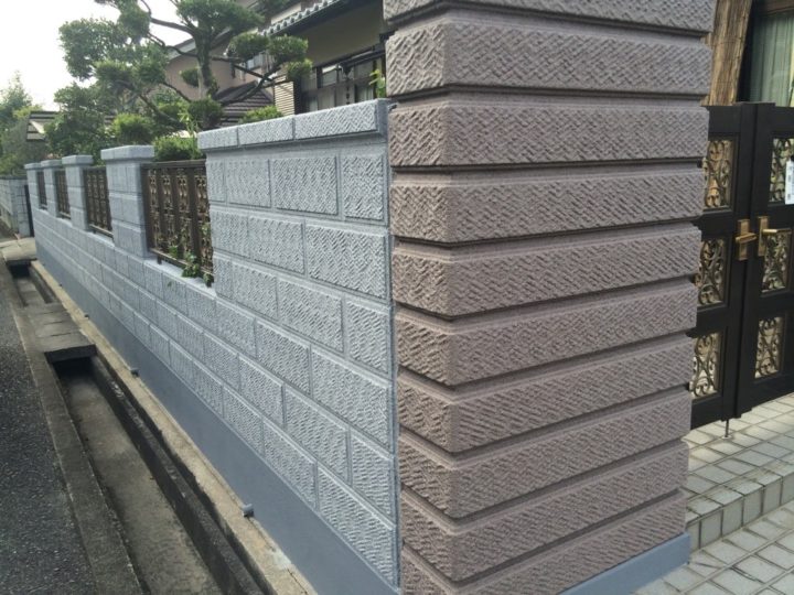 2年前に外壁塗装をさせて頂いた岡山市北区、H様邸にてブロック塀石材調吹付防汚塗装完成しました☆