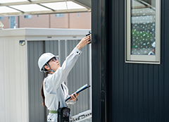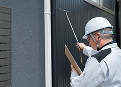 外壁の劣化状況や外壁材の種類をしっかりと把握した上で、下塗り材を選定。上塗り材と外壁材がぴったりと密着した剥がれ知らずの強固な塗膜を実現します!そのためにはまずは劣化度合いをしっかりと確認し、お客様のお家の状況を把握します!