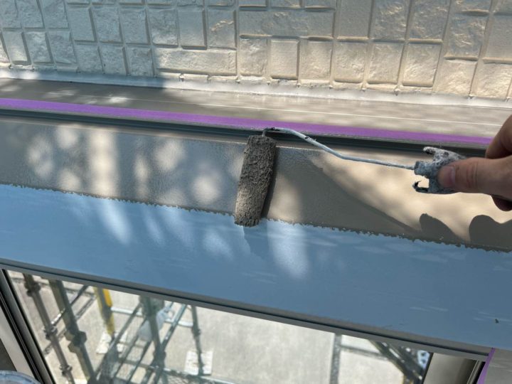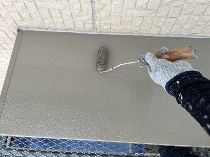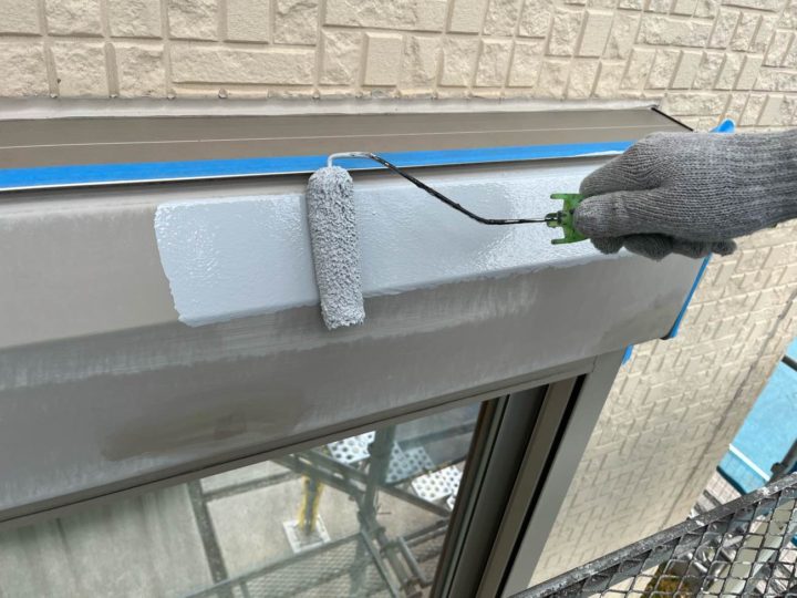 上塗り1回目を塗装します。シャッターBOX