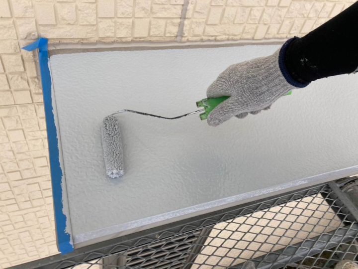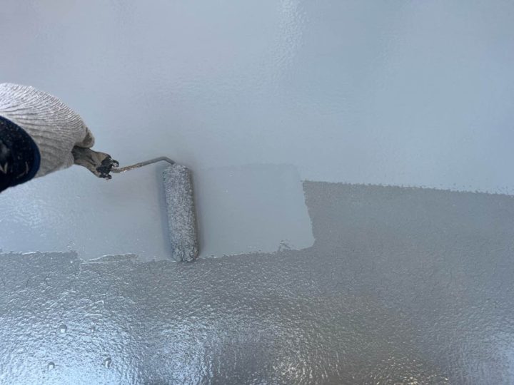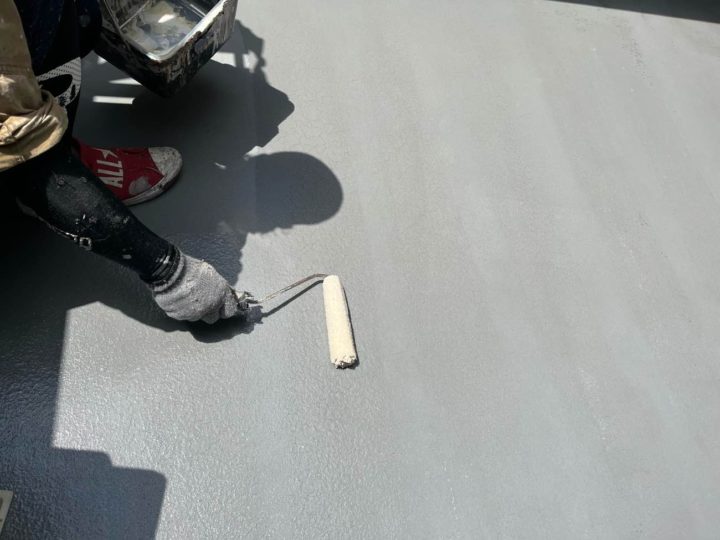 上塗り2回目を塗装します。ベランダ床