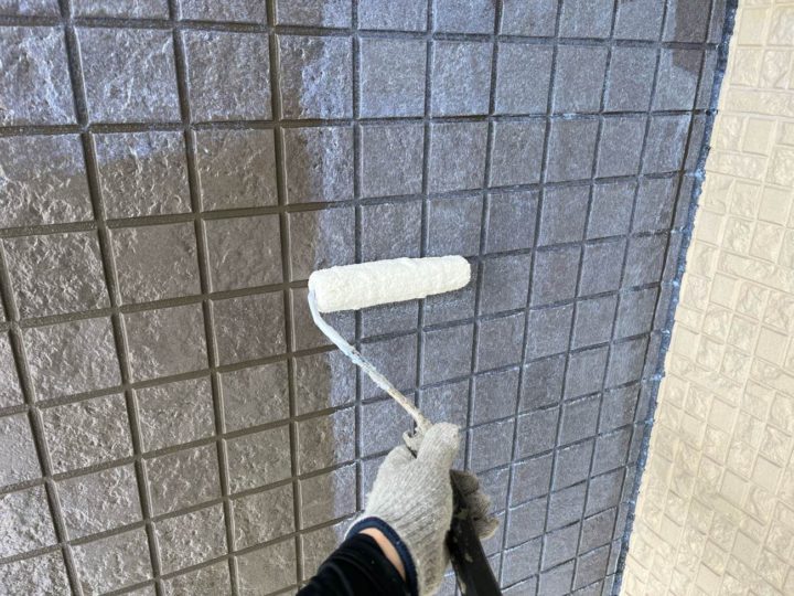 プライマーを塗布し、シーリングと壁材の付着力を高めます。シーリング打ち替え