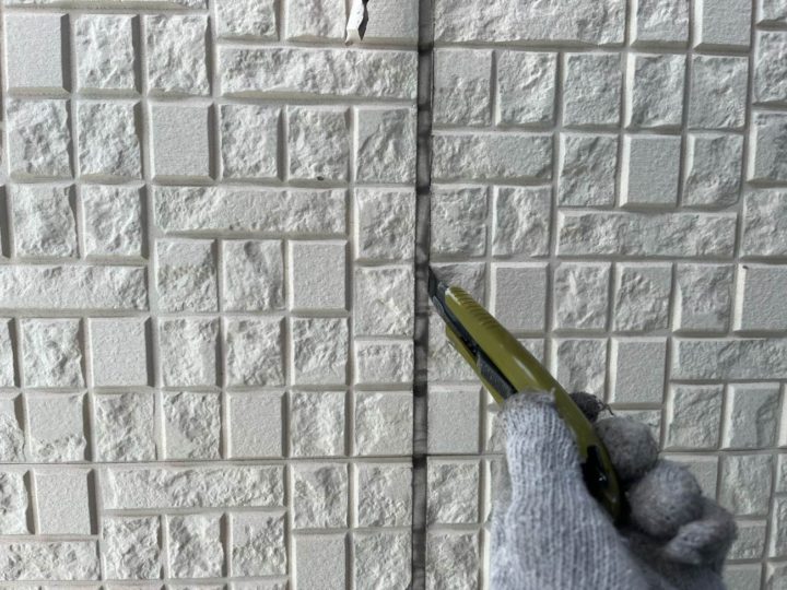 既存のシーリングを撤去していきます。シーリング打ち替え