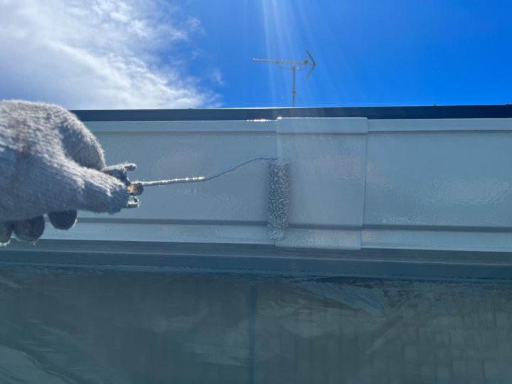 錆止めを塗布し、上塗り1回目を塗装します。雨樋