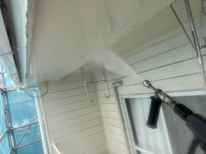 高圧洗浄により、チョーキングなどの汚れを落としていきます。シーリング打ち替え