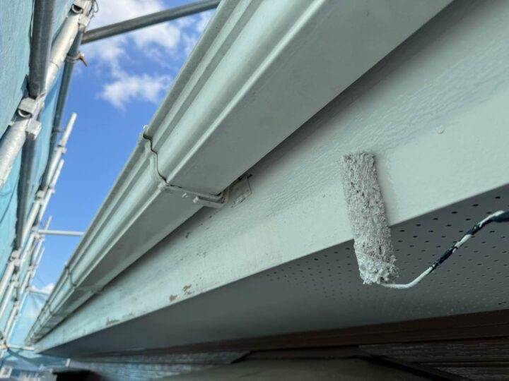 ケレン清掃し、錆止めを塗布していきます。鼻隠し