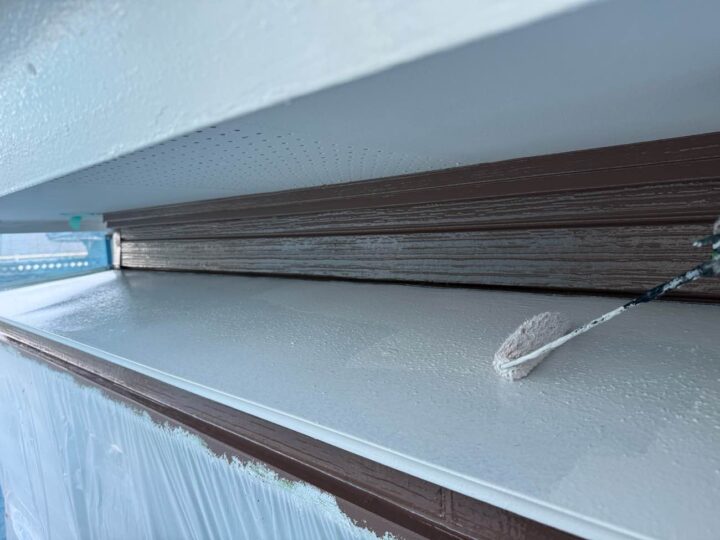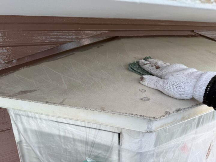 ケレン清掃を行い錆止めを塗布していきます。出窓庇