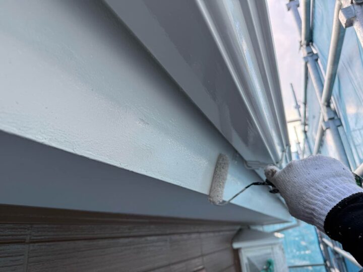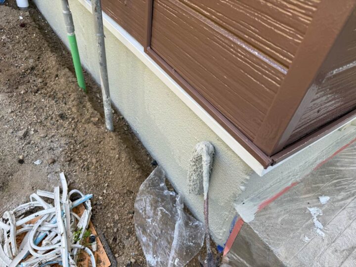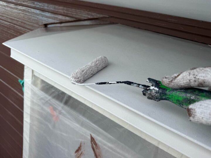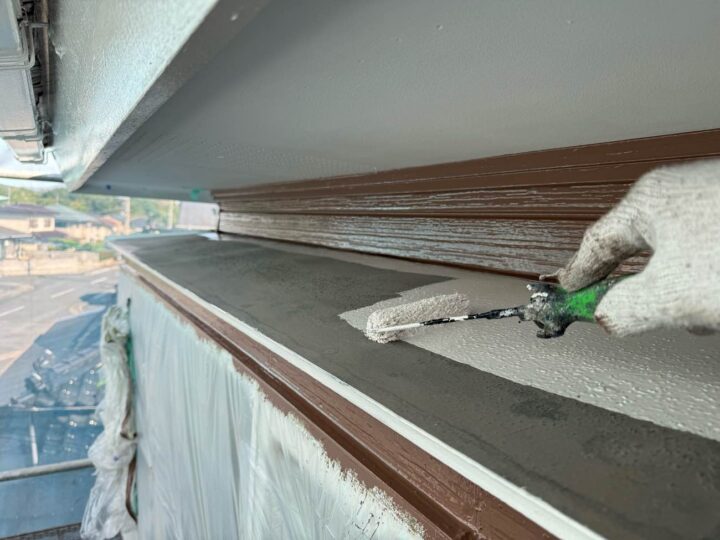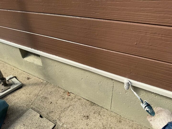 錆止めを塗布し上塗り1回目を塗装します。土台水切り板金