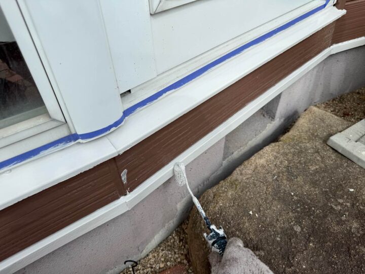 プライマーを塗布し、シーリングを充填していきます。外壁