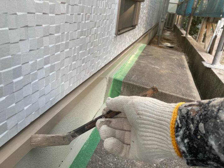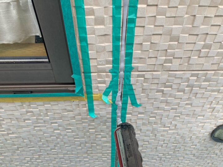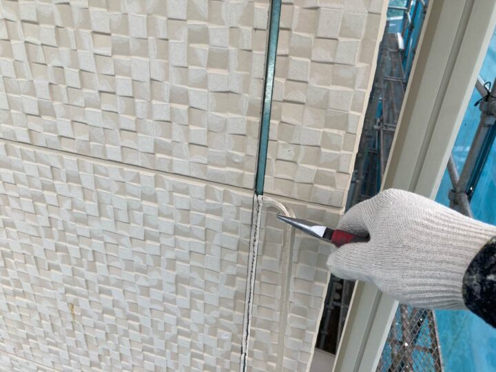 既存のシーリングを撤去していきます。シーリング打ち替え