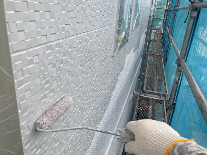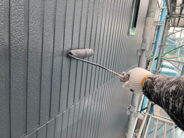 下塗りを塗装後、中塗りを塗装します。外壁(アクセント部)