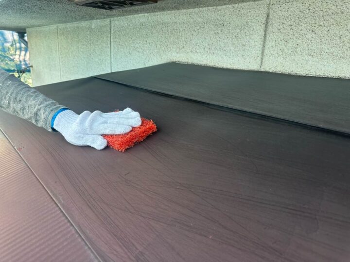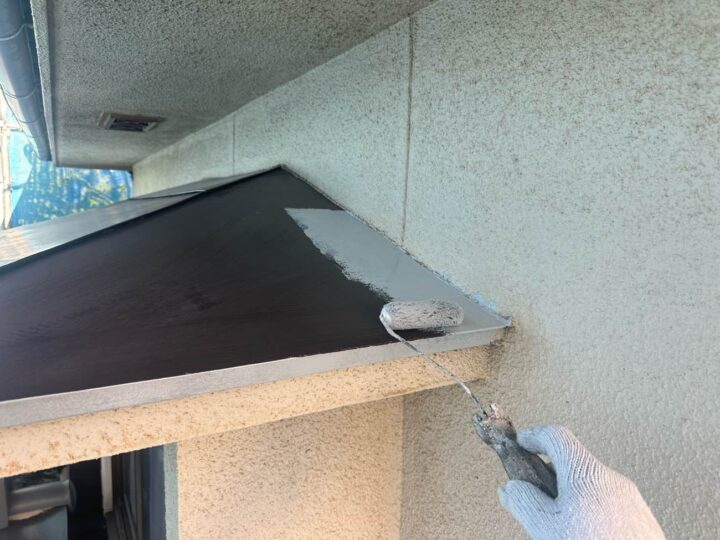 錆止め塗料を1回手塗りにて塗装します。上塗り塗料の1回目を手塗にて塗装します。