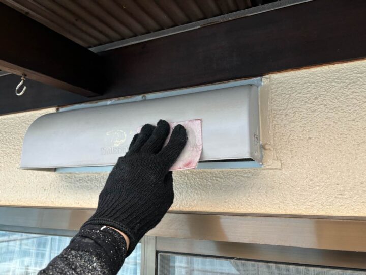 1回目の塗装が乾燥後、2回目の塗装をおこないます。換気口