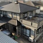 | 仕様 | 屋根(1階):N-45 外壁(軒天共):25-60B 雨樋(新設):しんちゃ 板金小庇:15-30B 壁際水切り板金:N-45 基礎:セメント色 エアコンダクトカバー:15-30B |